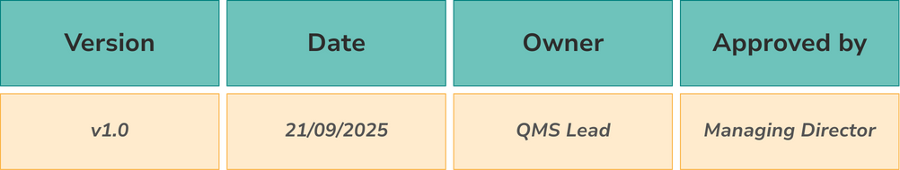 This isn’t just a signature at the bottom of the page — it’s about ownership. Sign-off shows that quality is being driven from the top, not delegated or sidelined. It also means leadership is accountable for what’s written in the policy and is committing resources, support, and direction to make it work in practice. Without this, the policy risks being seen as a document nobody takes seriously.